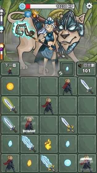 基础操作是类似于2048的滑动与合成,为了提升打击感,将2048中的数字拆分成了英雄、剑、冰、火四种元素,并在基础操作之上结合了攻击、技能、角色收集培养等RPG要素。
