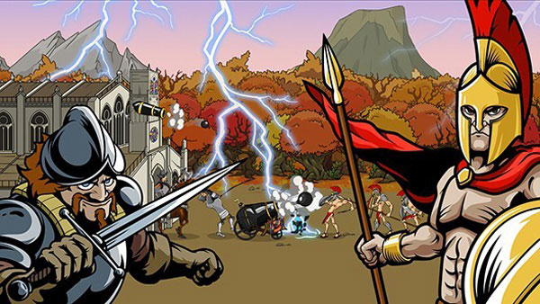 从山顶洞人骑恐龙世界大战坦克训练一支庞大的军队!一路毁灭未来的机器人战士!有这么多不同的单位来训练跨越7个完全不同的战争年代。29单元类型在您的处置,如攻击斯巴达,阿努比斯的战士,法师,骑士,步兵炮,榴弹兵、机器人和这么多更多!如果你认为最好的进攻是一个强大的防御尝试堆叠一排炮塔,切断敌人!是的,我们仍然有着名的鸡塔,这是一个必须建立!