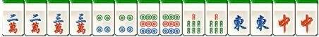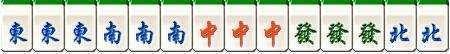 胡牌时全部牌组均由东、南、西、北、中、发、白这七种字牌构成,包含刻子或杠子以及一对将牌。