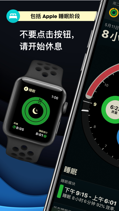 autosleep可以使用手表来自动追踪您的睡眠。无需按动任何按钮,无需安装任何手表应用,只要安稳睡觉就好!