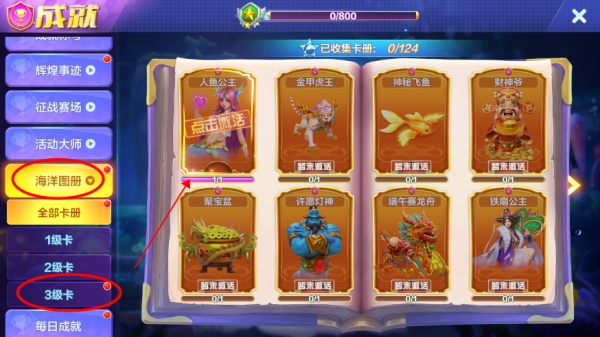 2、进入后找到“海洋图册”中带有红色提示点的卡册(例如“人鱼公主”);