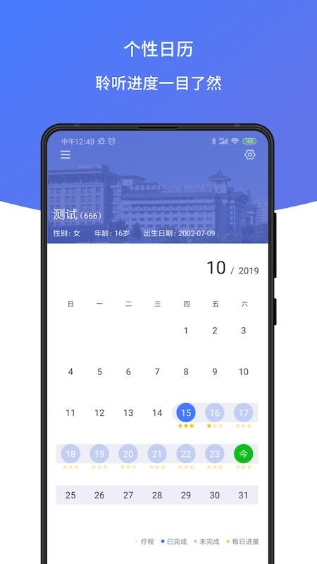 4、通过日历提醒,让用户能够清楚的了解治疗的疗程;