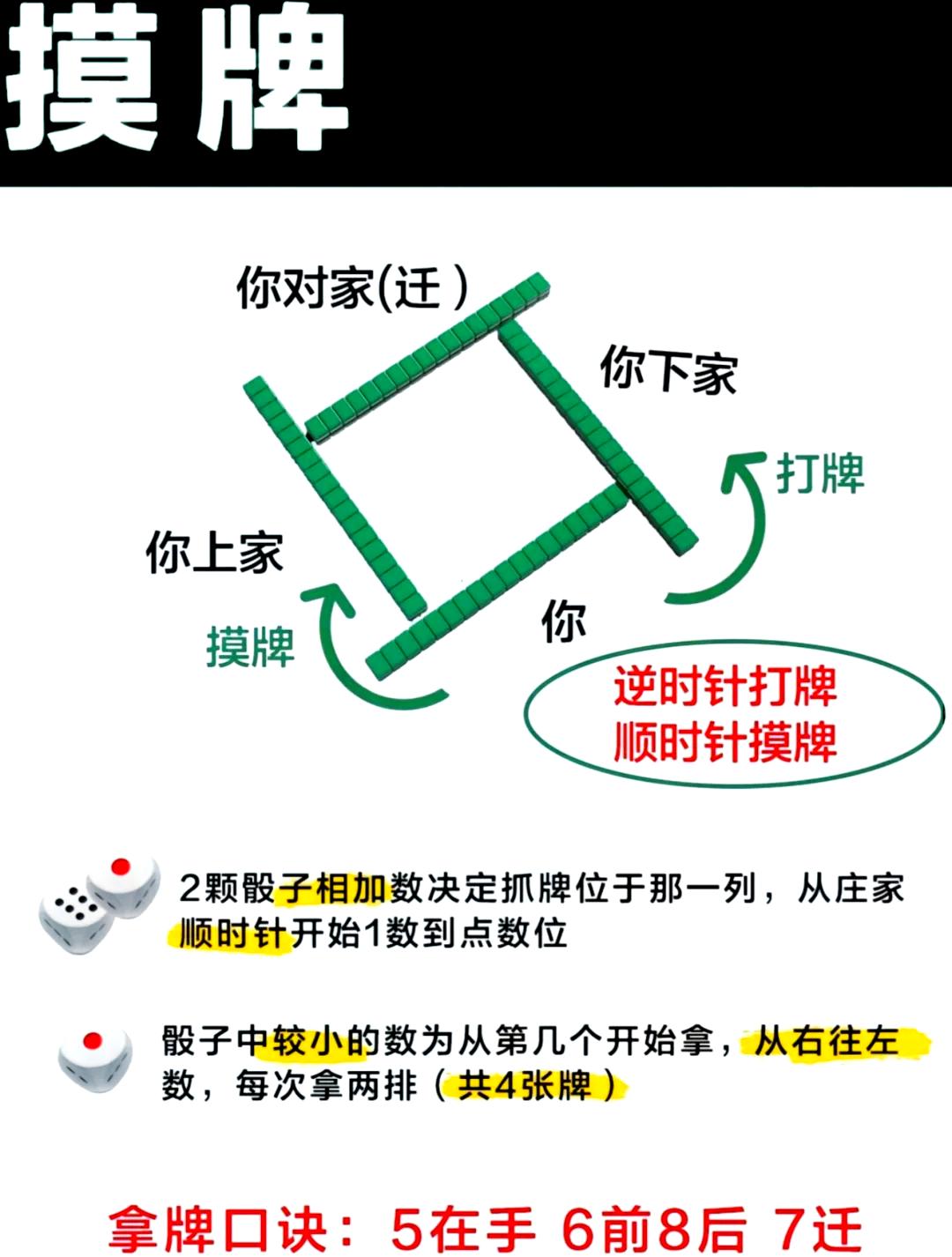 麻将抓牌顺序方向口诀