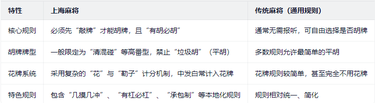 上海麻将与传统麻将的主要区别