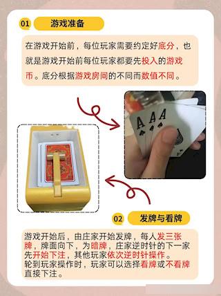 每人发3张暗牌(牌面朝下)。从庄家下家开始,按逆时针顺序行动。轮到你时,可选择“不看牌下注”(暗注)或先“看牌”再下注。一旦看牌,后续所有下注都按“明注”计算——金额翻倍。