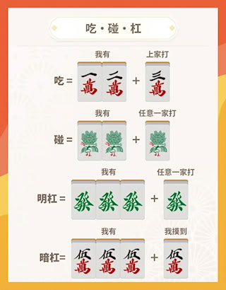 4、 常见番种包括立直、断幺九、平和、一气通贯等,策略性远高于普通鸡胡。