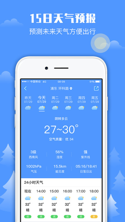超长15天天气预测,预知晴雨为您的日常生活早做打算。
