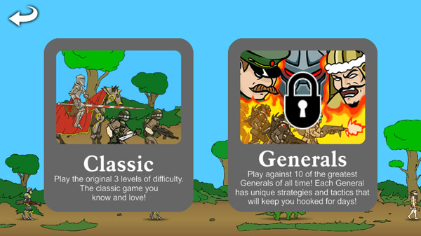 2、战争进化史从被动防守,到反击,最后大反攻,一直攻破对方,每一次进步和升级都会让玩家雀跃,游戏的画面还算精致,比较清晰,尤其是攻击效果,无论是弹弓、冲锋枪、激光炮都让玩家看着有一定的真实感。