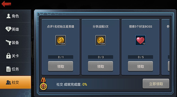 6、社交:以组队社交为主,玩家加入公会、点评英雄、击败好友boss等都可以完成社交成就,领取金币、爱心等奖励。