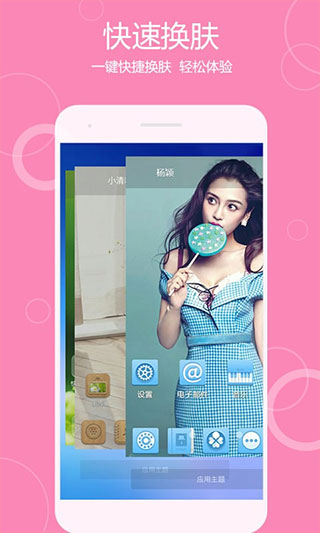 2、秀出肤色:秀桌面横向滚动式卡片效果,带给你惊人的视觉盛宴;一键换肤滑动快速展现各类主题,桌面美化可随心选择喜欢的图标,展示自己的天性!
