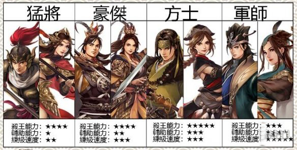 这个游戏分为猛将,豪杰,军师,方士四大职业,猛将只能带两个小兵,豪杰带八个,车是带四个方式带两个小兵的部分,前期练级可以达到的各种低级兵符,直接摆开出高级兵符,俗称四角冰敷,也就是骑马的,例如骑兵,轻骑兵,虎豹骑,弓骑兵,铁骑兵,猛兽兵,匈奴兵,兵营里面买的义勇兵可以挑选,资质二级,攻击力达到38以上的可以出。小兵等级越高回收越高。赶紧去试试。