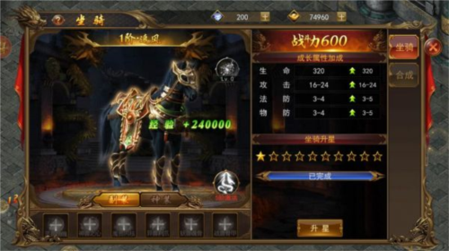 激活坐骑之后,可以通过穿戴、升星以及合成等方式来提升坐骑的战斗力