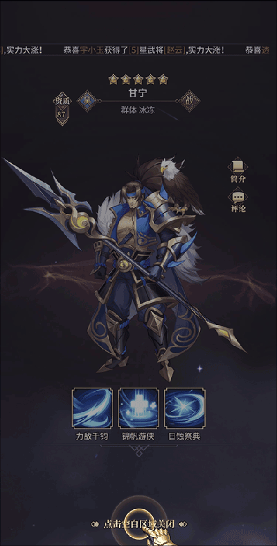 5、在这里点击空白处继续,在这里就获得了英雄将领。