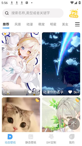 1. 打开APP,进入“壁纸”页面,选择自己喜欢的壁纸类型。