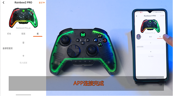 5、灯光个性调节:有多种预设光效模式,还支持 RGB 色盘自定义调节,可打造专属手柄灯光效果。