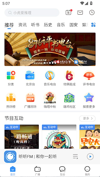 1、首页提供了丰富的音频分类,如听书、音乐、娱乐等