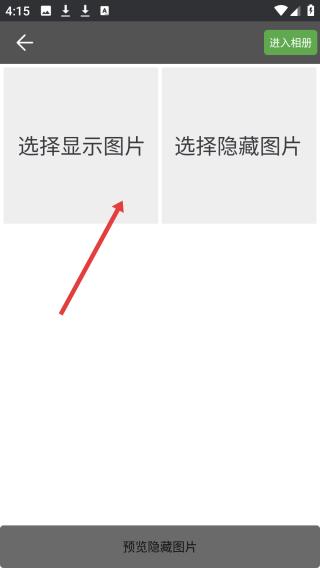 3、点击进入相册提供选择显示与隐藏图片功能,有进入相册按钮,支持预览隐藏图片操作。