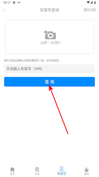 2、手动输入完整车架号或上传包含车架号的车辆照片
