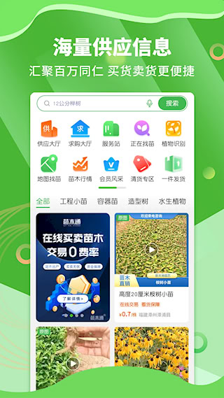 1、 提供苗木供应与求购信息发布平台,支持图文详情上传,实时展示于供需大厅便于资源对接。