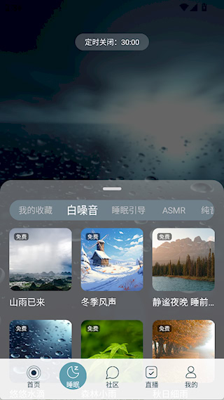2、睡眠界面有许多背景音乐,可以定时关闭