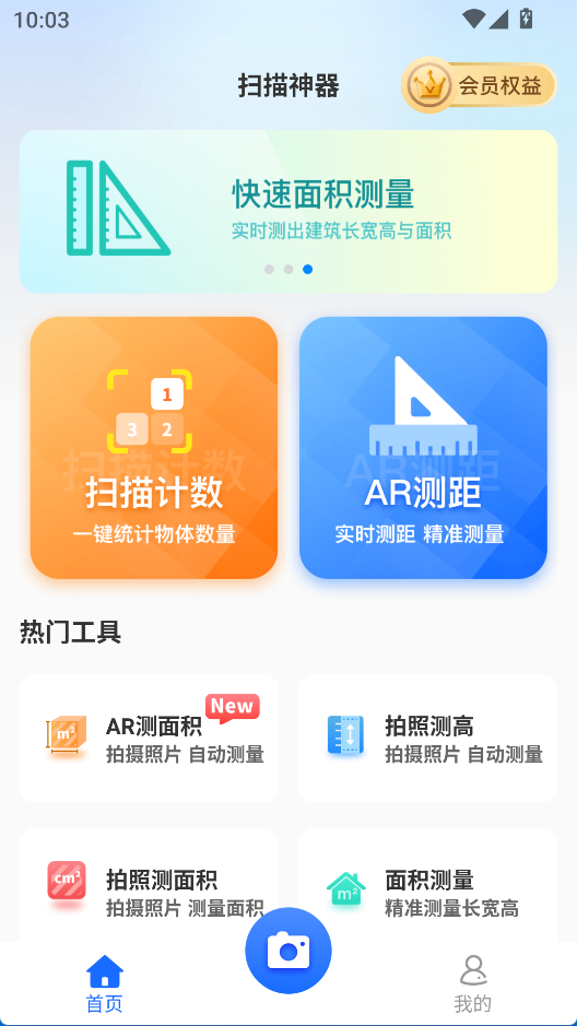 1、打开app,可以看到扫描计数、AR测距等多种功能