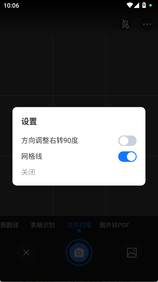 3、点击右上角按钮调整识别角度、开启网格线做参照