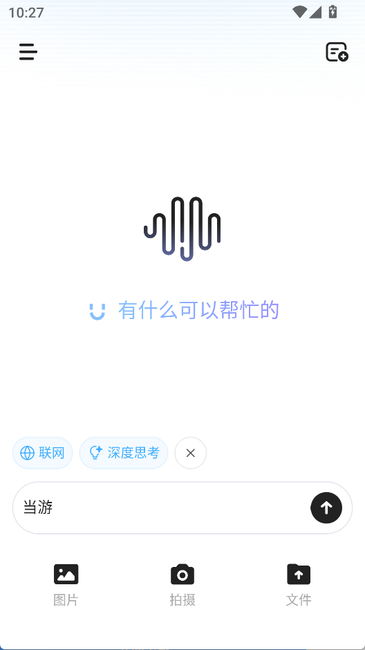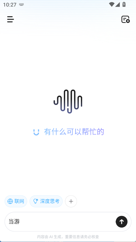 1、在输入框内输入文字进行对话,提供联网与深度思考选项,点击右上角按钮新建对话