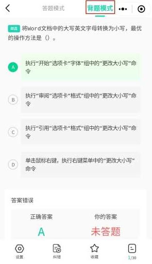 4、 在答题界面点击“背题模式”即可切换为直接显示答案的模式,该模式下会同步呈现题目答案与详细解析内容。