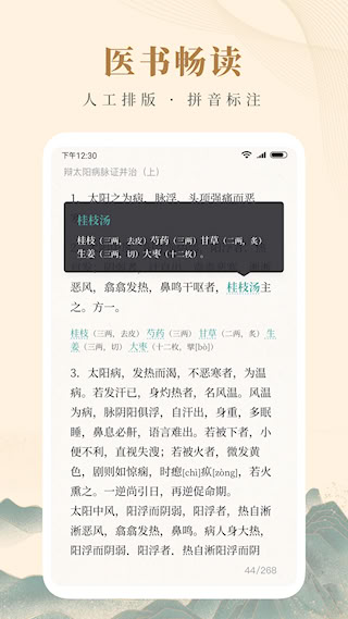 2、建立全面的中医知识检索数据库,包含药材、经方、穴位等专业信息。支持关键词快速查询,收录大量临床医案与实用药膳配方。