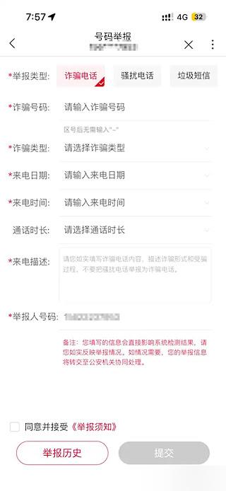 4、根据页面引导,逐步填写需举报的号码信息、问题类型及相关描述,完成信息录入后提交即可完成整个举报流程。