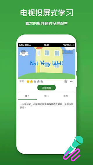 1、 独具特色的“角色扮演”配音模式是一大亮点。学习者可以选择影视剧中的不同角色进行对话配音,或与他人合作完成,极大增强了学习的趣味性和情境感,让人真正“融入”对话。