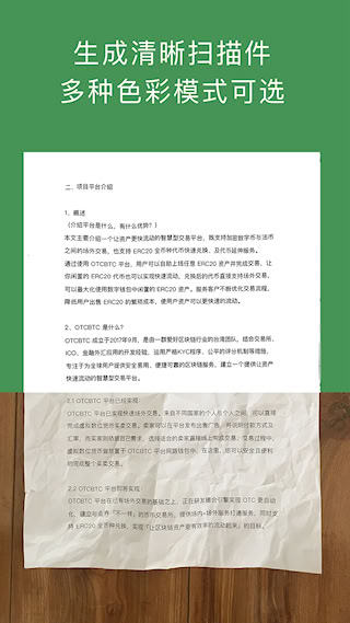 8、镜头对准文件时自动捕捉边缘,生成扫描图像,并提供多种画面色调选择。