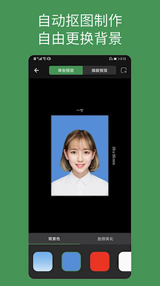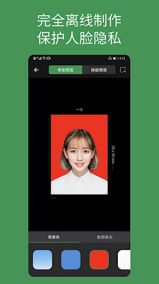 3、集成智能美颜算法,提供瘦脸、大眼、肤色提亮等精细化调整。处理效果在保持人物特征真实性的前提下,自然提升精神面貌,符合证件照的规范性要求。