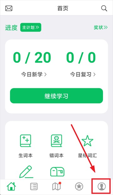 1、下载安装词力派并打开软件,进入后、点击右下角的我的。