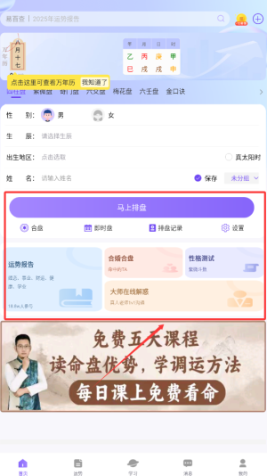 4、紫薇排盘:支持大限流年流月流日精准推算,全部功能免费开放使用。