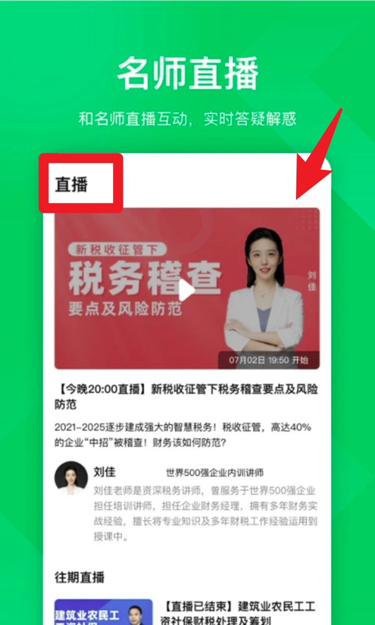 3. 点击首页直播入口进入名师直播课,可边听课边提问,支持回看往期内容复习巩固。