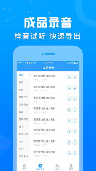 3、推出"智能降噪"算法,有效去除录音环境中的低频杂音。人声增强技术突出中频细节,使叫卖声更具穿透力。