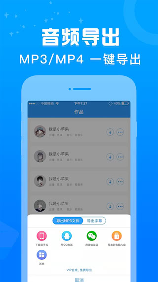 3、支持同步导出MP3音频与歌词文件,便于在不同社交平台进行分享传播。