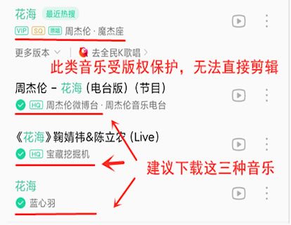 会员和付费以及部分伴奏,属于版权保护内容,下载的音乐基本上都是加密状态(如酷狗音乐后缀为kgm)无法直接剪辑制作