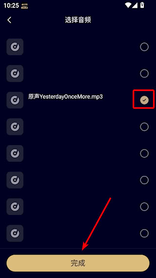 2、在文件列表中勾选目标音频素材,确认选择后进入参数设置界面。