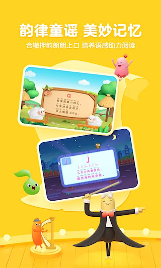 4、 独创63首拼音记忆儿歌,将字母发音规则融入旋律,通过音乐节奏强化发音记忆