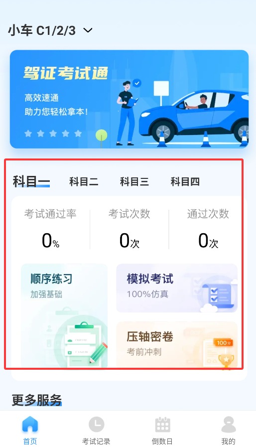 3、考试记录可查看各科目通过率、考试次数及成绩详情,辅助学习规划。