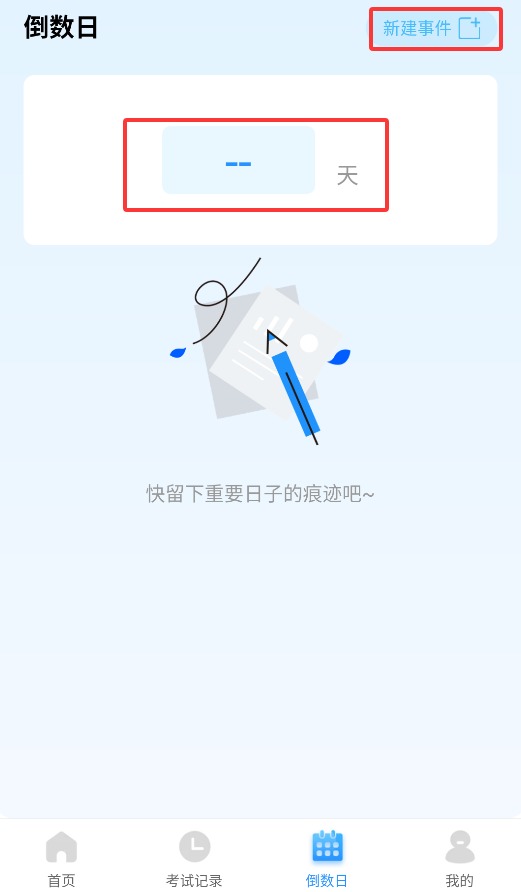 4、倒数日功能支持新建考试提醒事件,帮助用户追踪重要考试日期。