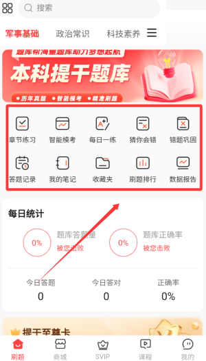 本科提干题库帮app是一款融合了在线练习、备考训练、课程学习、资料检索等多项功能的备考软件,为学子提供了许多学科的教学资源。拥有题库练习、模拟测试、错题强化等丰富内容,可以适应不同使用者的学习需求。实用的笔记工具帮助记录重点知识、薄弱环节,方便持续温习巩固,实现全面的考试准备。它拥有超多种专项训练模块,所有题目都有详细的答案分析、解题思路,有效辅助使用者提升学习成效、应试能力。