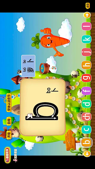 2、采用动画情景教学形式,每节课程聚焦一个拼音字母及其对应汉字。将笔画演示与发音指导相结合,实现拼音认读与书写规范同步学习,提升教学效率。