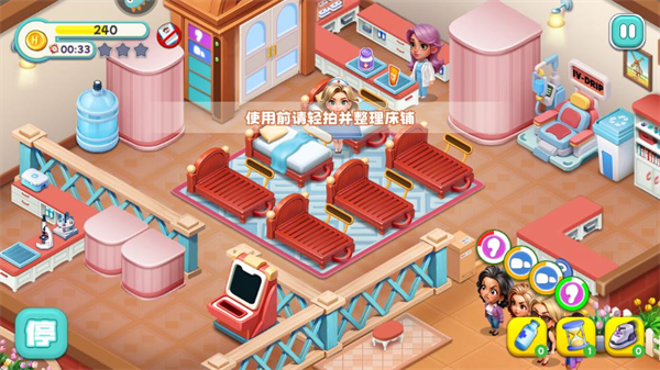 2、独特的专属技能:在积累游戏经验的过程中,将逐步解锁 “超级速度” 这一专属技能。该技能能显著提升工作处理效率,在加快游戏节奏的同时,增添操作乐趣,让医院日常运转更具活力。