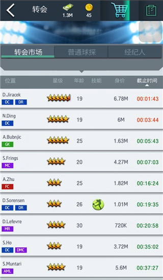 提供自由拍卖球员平台,可查看各位置、各类型球员并参与竞标,报价最高者获得球员;也可将自身球员上架竞拍,交易后获取转会费。