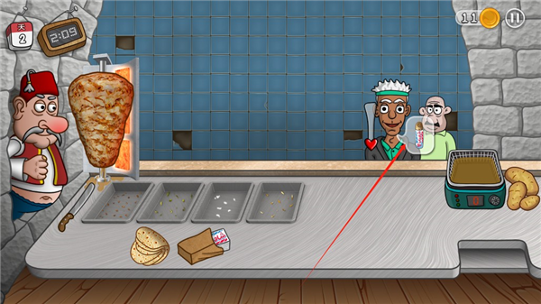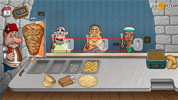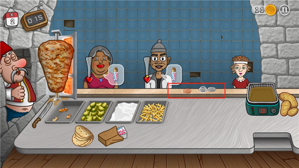 2、在游戏中需要制作沙威玛,并提供给顾客;