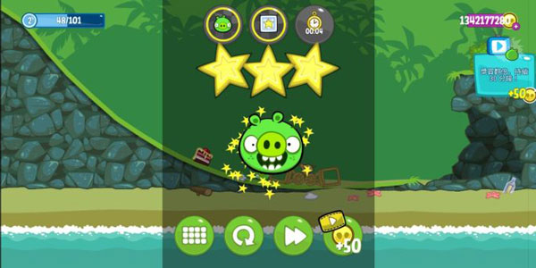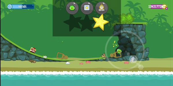 4、完成挑战:驾驶载具进入关卡,操控绿猪躲避陷阱、利用道具,让载具稳定行驶,达成收集或到达目标。