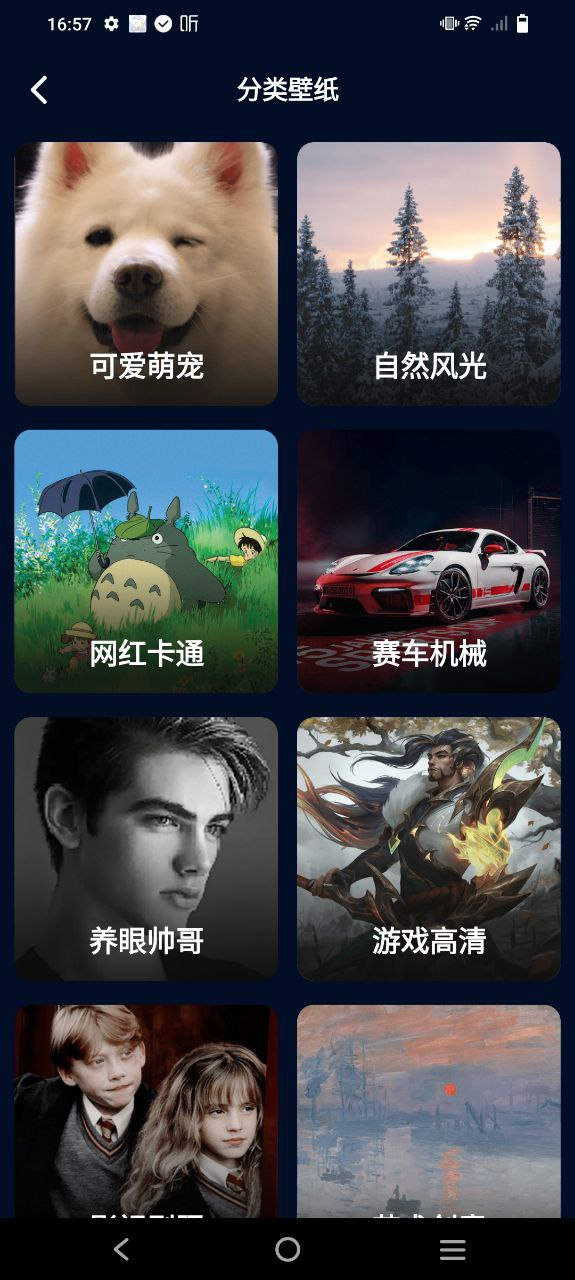 2、分类功能:分类详细,涵盖动态壁纸、壁纸大全、主题壁纸、手机壁纸、墙纸、高清壁纸、壁纸制作等,快速定位偏好类型;